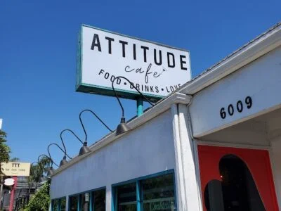 ATTITUDE CAFE is a poolside-adjacent New American brunch and cocktail spot just off 3rd Street, balancing buttermilk pancakes, Benedicts, and vegan-leaning plates. Guests use it as a casual hangout for mimosas, kimchi fried rice, and California Benedicts in a bright room with indoor and patio seating.