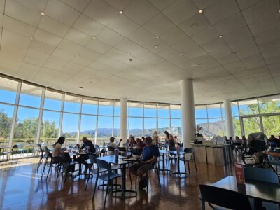 California cuisine served with panoramic views of the Santa Monica Mountains and Gehry architecture—the setting does most of the work here. Seasonal menus from farmers markets rotate regularly; dishes like the short rib plate and scallops deliver competently without attempting to compete with standalone fine dining. Factor in the $25 parking and tram logistics when planning; the experience is inseparable from the museum visit.