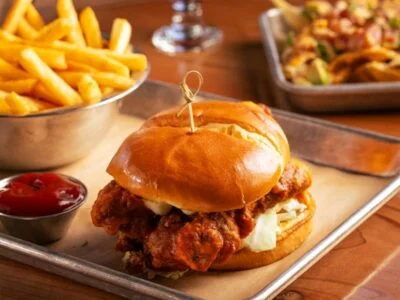 Brewpub from Brews Brothers owners features Cali Classic smashburgers alongside 37 beer taps, occupying the revamped Stout Burgers space with warm wood interiors. The brisket egg rolls and tapas-style small plates complement craft beer selections including house-brewed options.