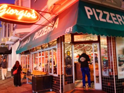 Giorgio's has been serving classic thin-crust pizzas and calzones for over 50 years, offering a nostalgic late-night option.
